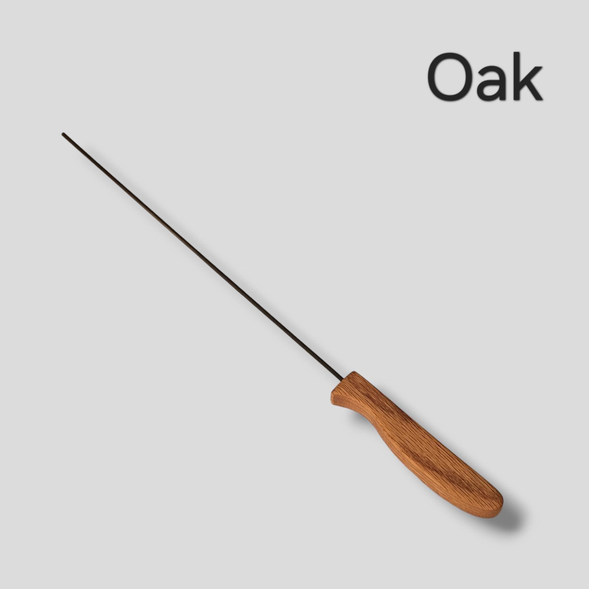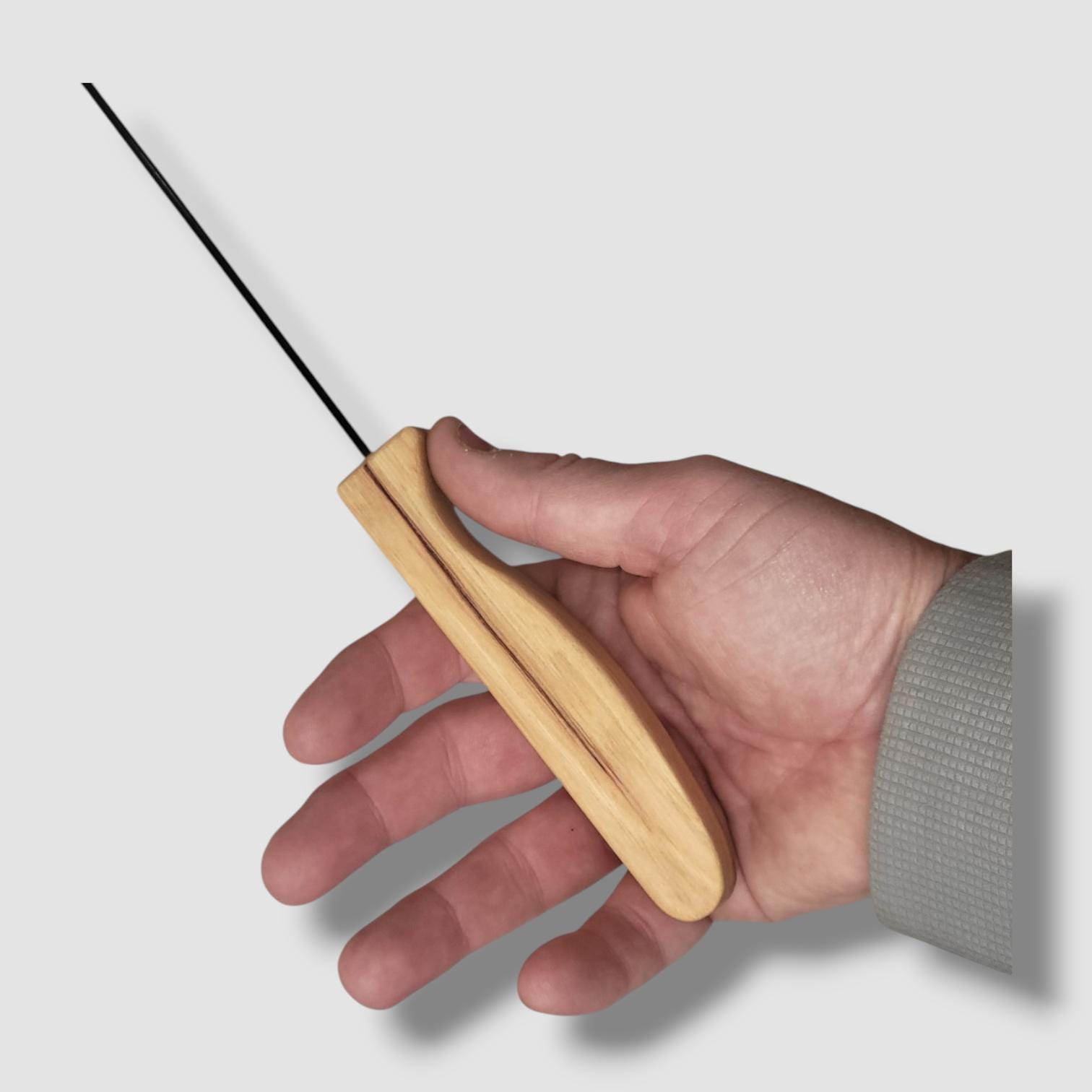 Wicked Stick dimensions: 11-inch long 3mm diameter carbon fiber dowel glued into a 5-inch handle for a 16-inch total length